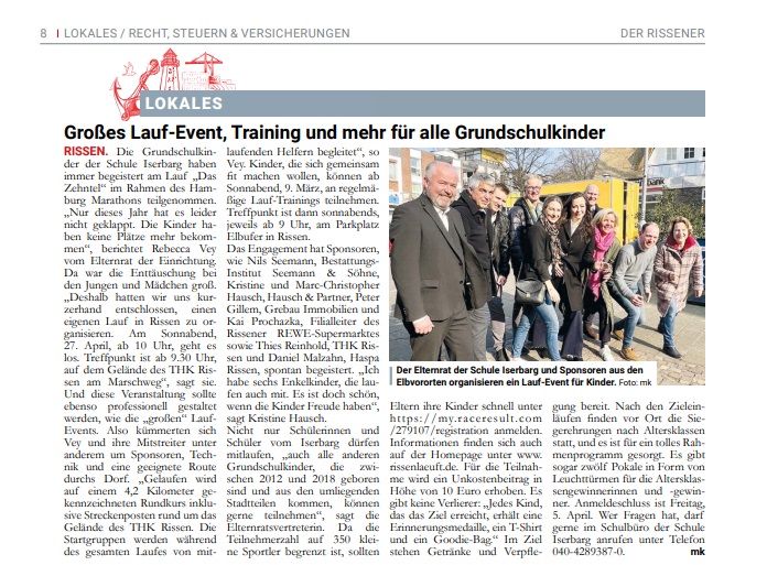 Ein Bericht in der Zeitung Der Rissener zu dem Projekt "Rissen läuft".